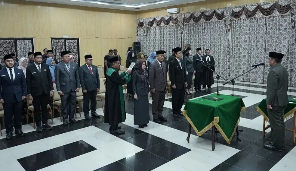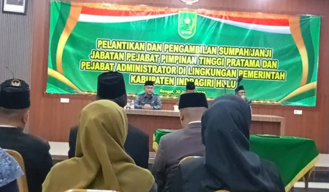 Pelantikan dan pengambilan sumpah janji jabatan pejabat administrator berdasarkan Surat Keputusan Bupati Nomor Kpts.84/I/2026 tanggal 30 Januari 2026 Tentang Pengangkatan Dalam Administrator Di Lingkungan Pemerintah Kabupaten Indragiri Hulu.